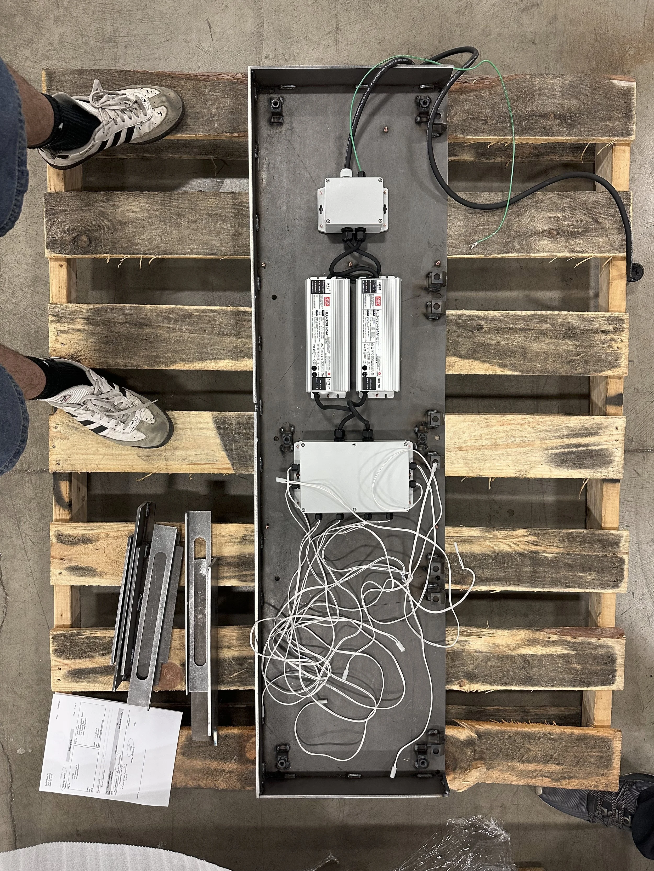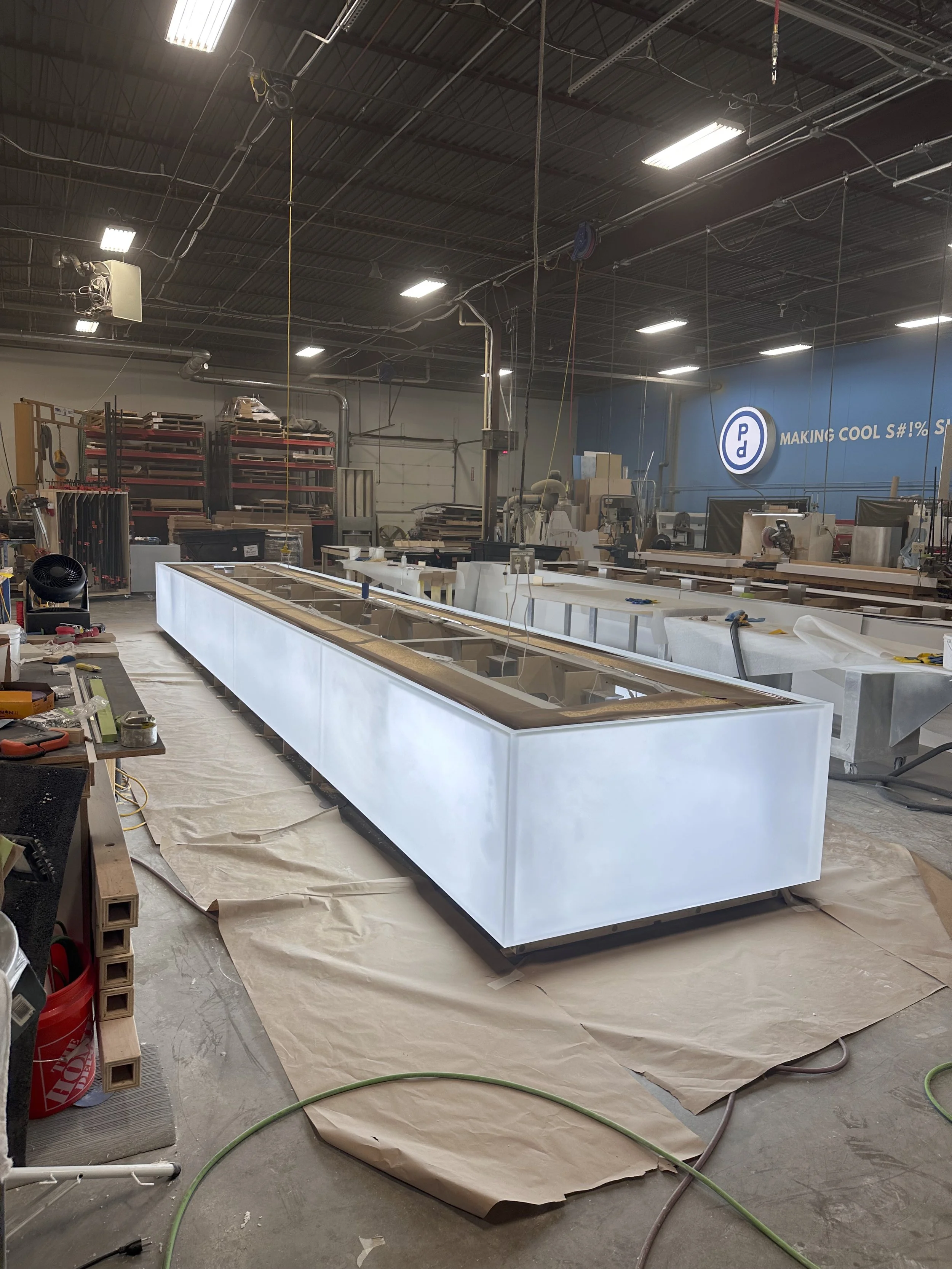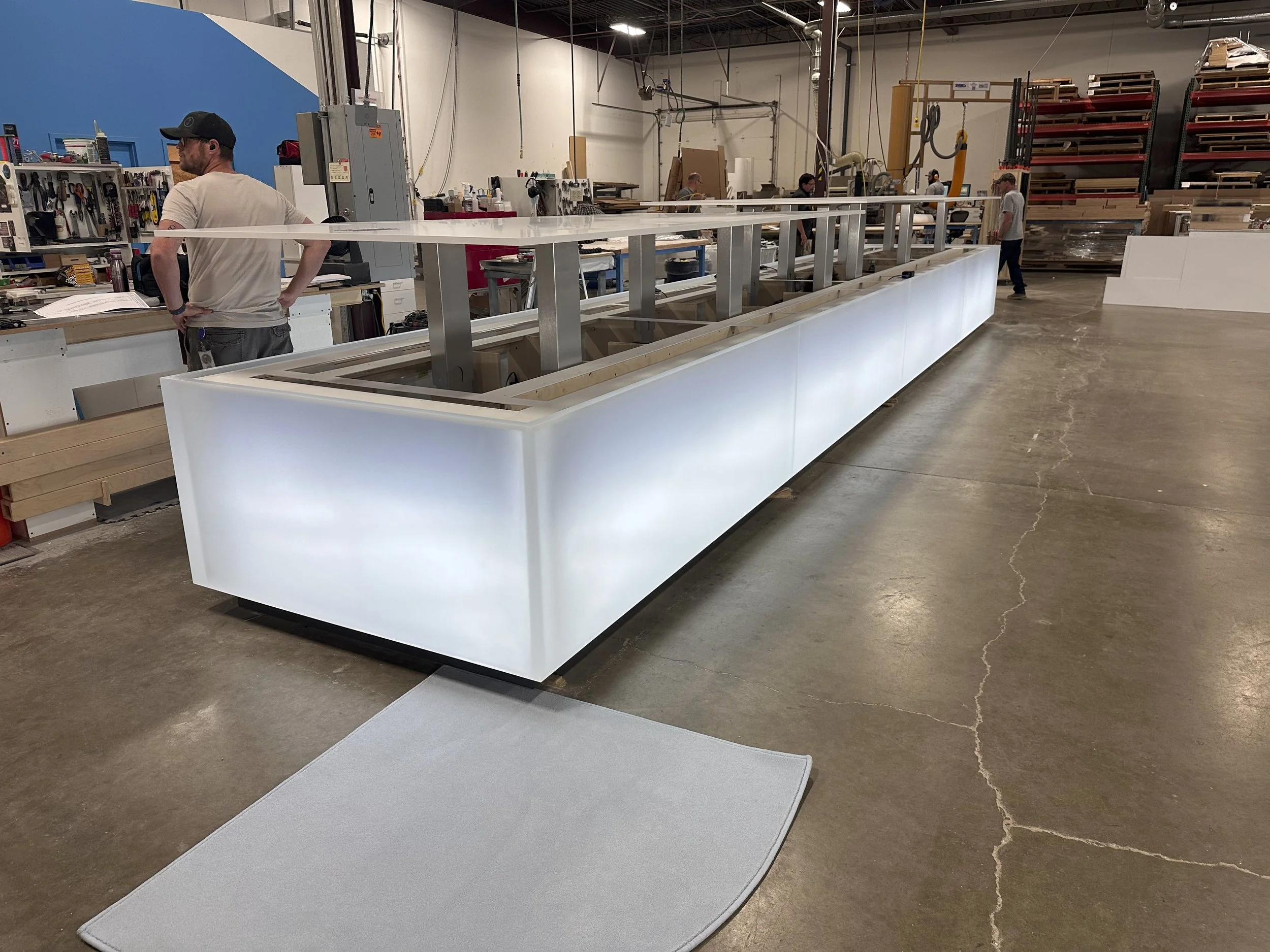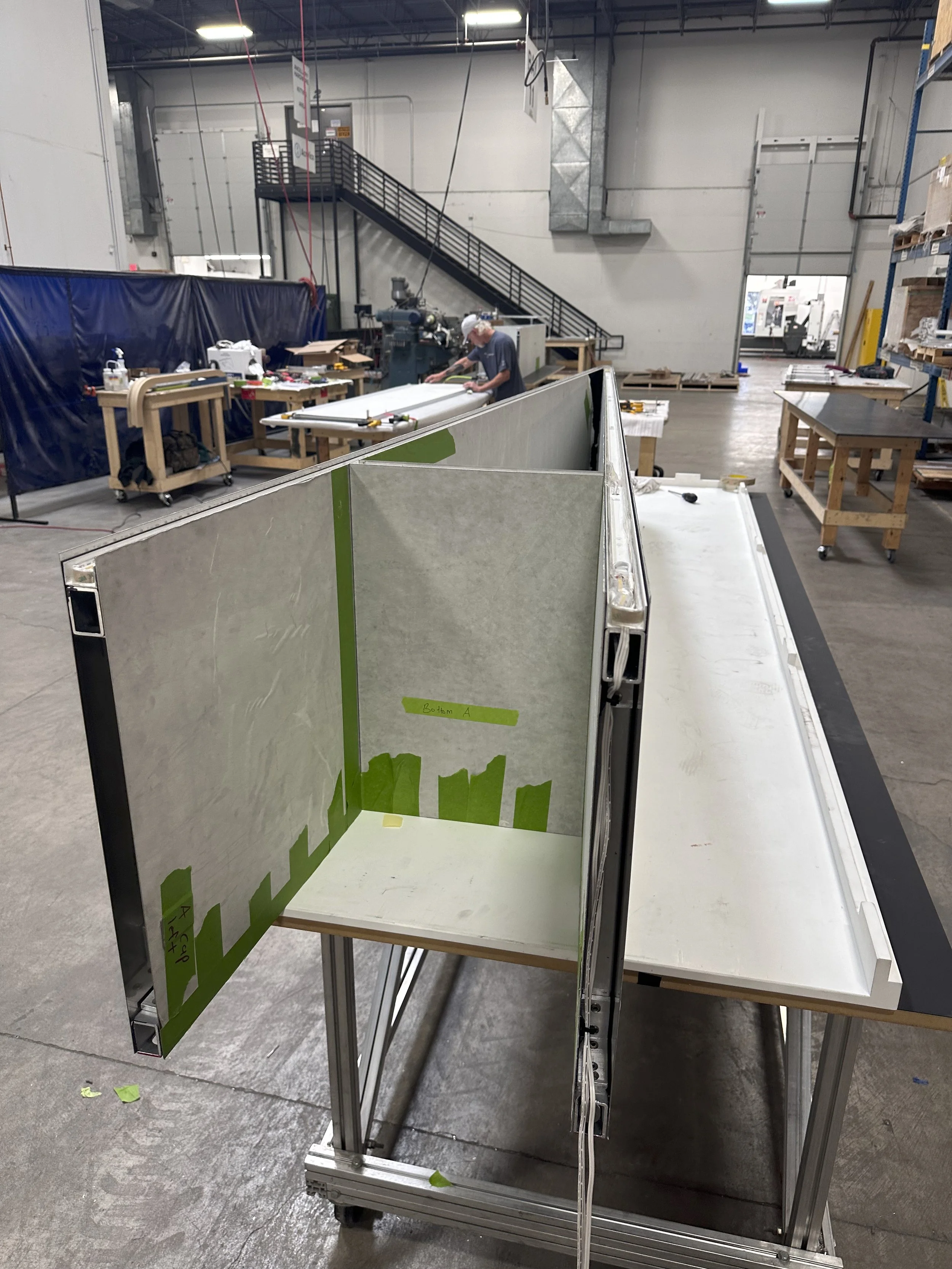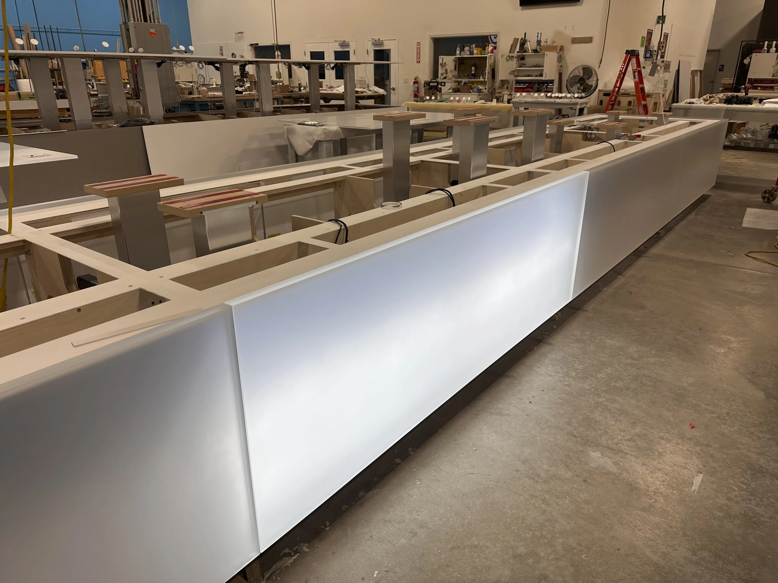 For the release of the iPhone 17, Apple asked us to build sculptures that were sent around the world, along with two tables for their New York City Showroom. Three months of long days, weekends, nights, and mornings led to the construction of these pieces. I was responsible for the electrical systems and lighting of both the tables and sculptures. The table’s system was constructed modularly using Weiland Connectors due to the need to ship pieces separately.
